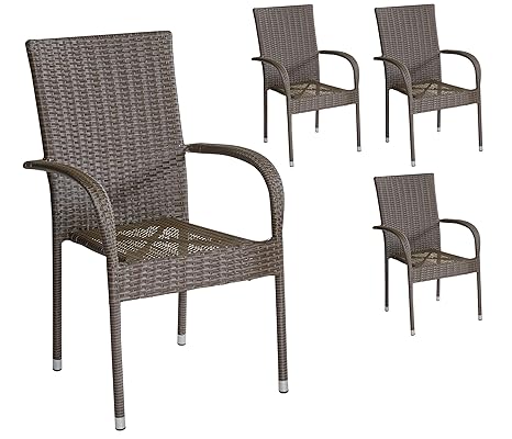 4er Set Armlehnstuhle Gartenstuhle Stapelstuhle In Braun Mit Armlehnen Exkl Auflage Stapelbar Fur Garten Terrasse Balkon Oder Bistro Gartenmobel