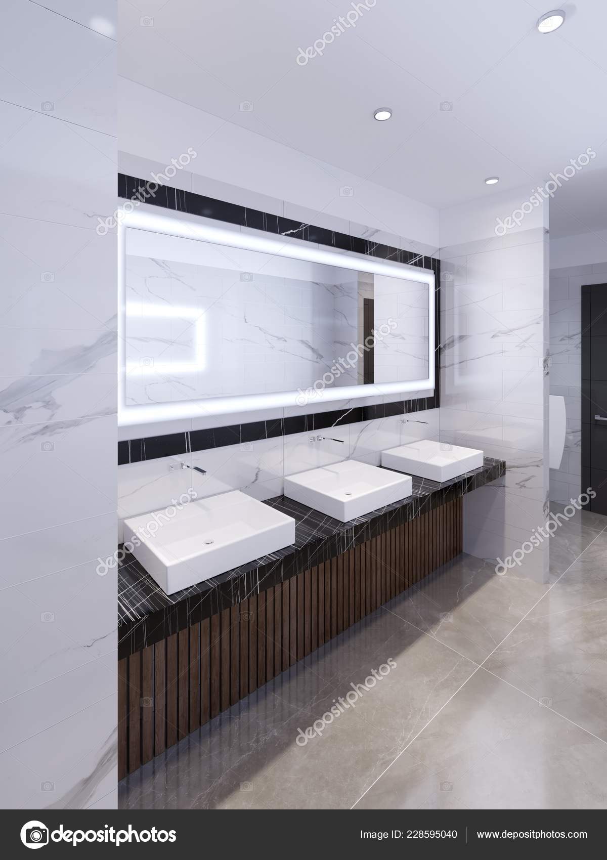 Drei Sinkt Auf Dem Schwarzen Marmor Arbeitsplatte Und Ein Grosser
