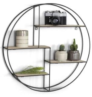 Wandregal Metallregal Hangeregal Rund Holz Metall Schwarz Regal