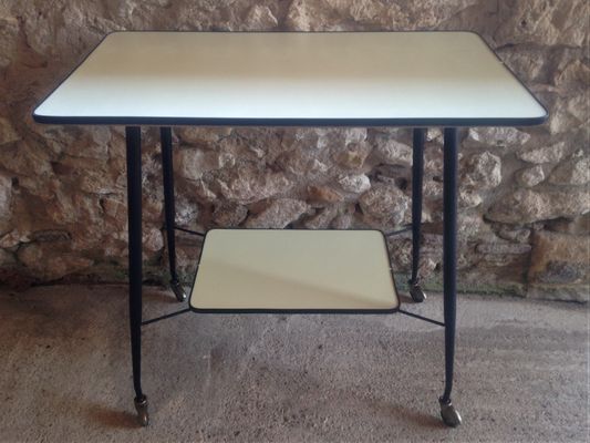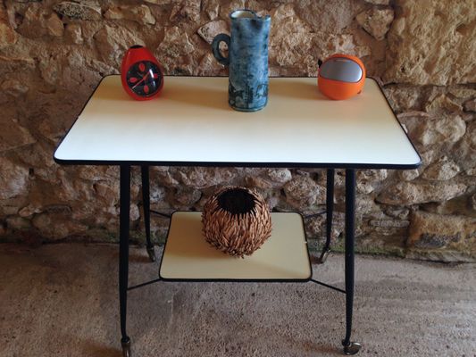 Schwarz Gelber Franzosischer Mid Century Beistelltisch Aus Resopal