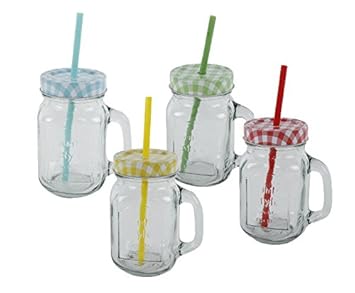 Trinkglas Mit Deckel Strohhalm 4er Set Trinkglaser Mit Henkel