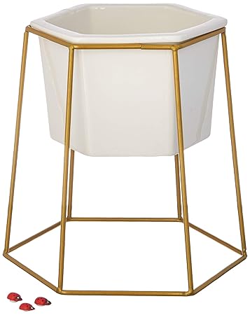 Gold Geometric Ubertopf Metall Eisen Halter Rack Mit Weiss Klein