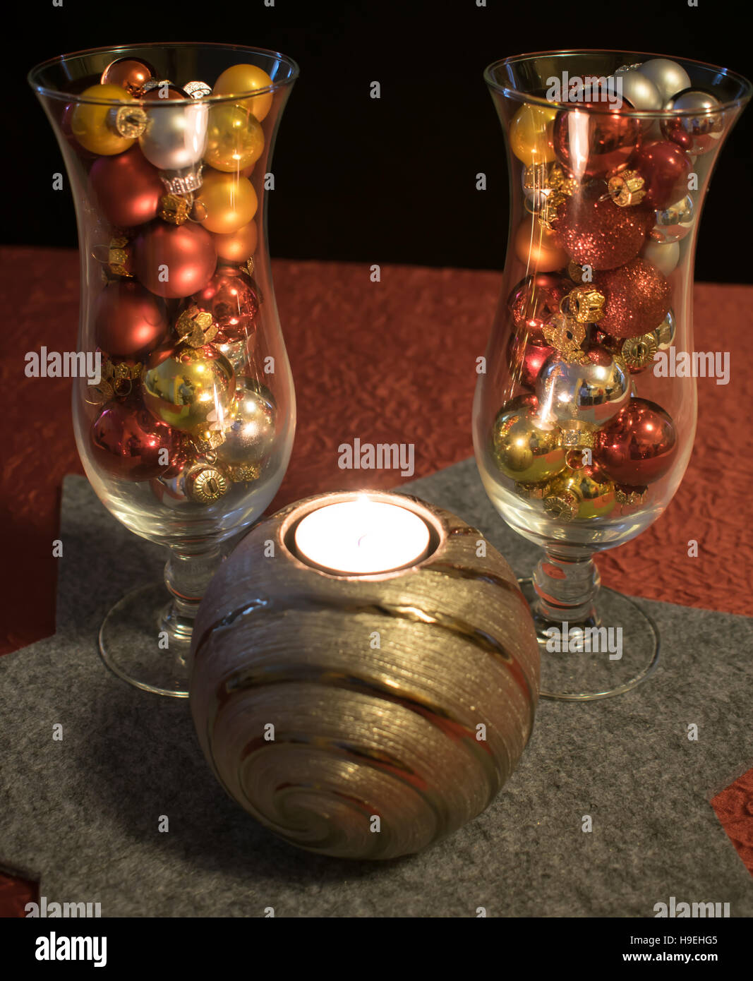 2 Cocktail Glaser Gefullt Mit Bunten Weihnachtskugeln Auf Graue
