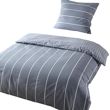 Keayoo Bettwasche 135x200 Cm Baumwolle Grau Gestreift Mit