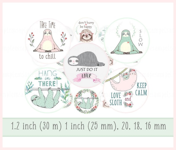 Digitale Kreise Faultiere Faultier Cabochon Vorlagen Cabochon Etsy