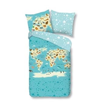 Aminata Kids Kinder Bettwasche 135x200 Cm Welt Karte Zoo Tiere
