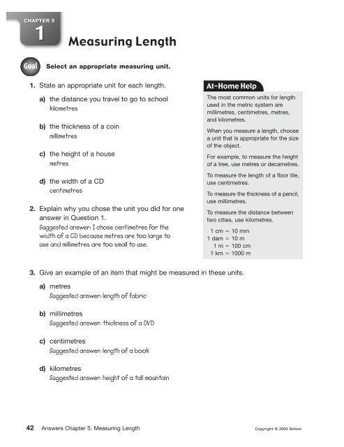 Chapter 5 Measuring Length And Time Nelson Math 6