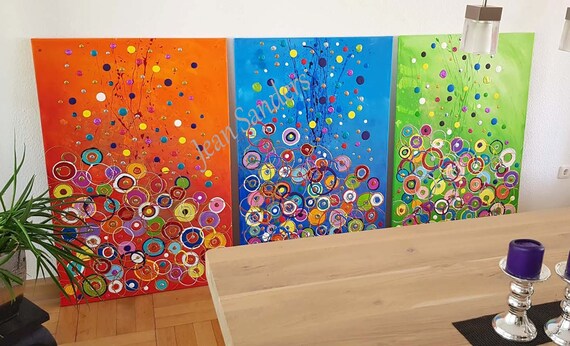 Jean Sanders 120x240cm 3 Teilig Abstrakt Bunt Farbenfroh Etsy