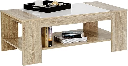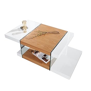 Design Glas Couchtisch Onyx Weiss Hochglanz Eiche 110 Cm Amazon